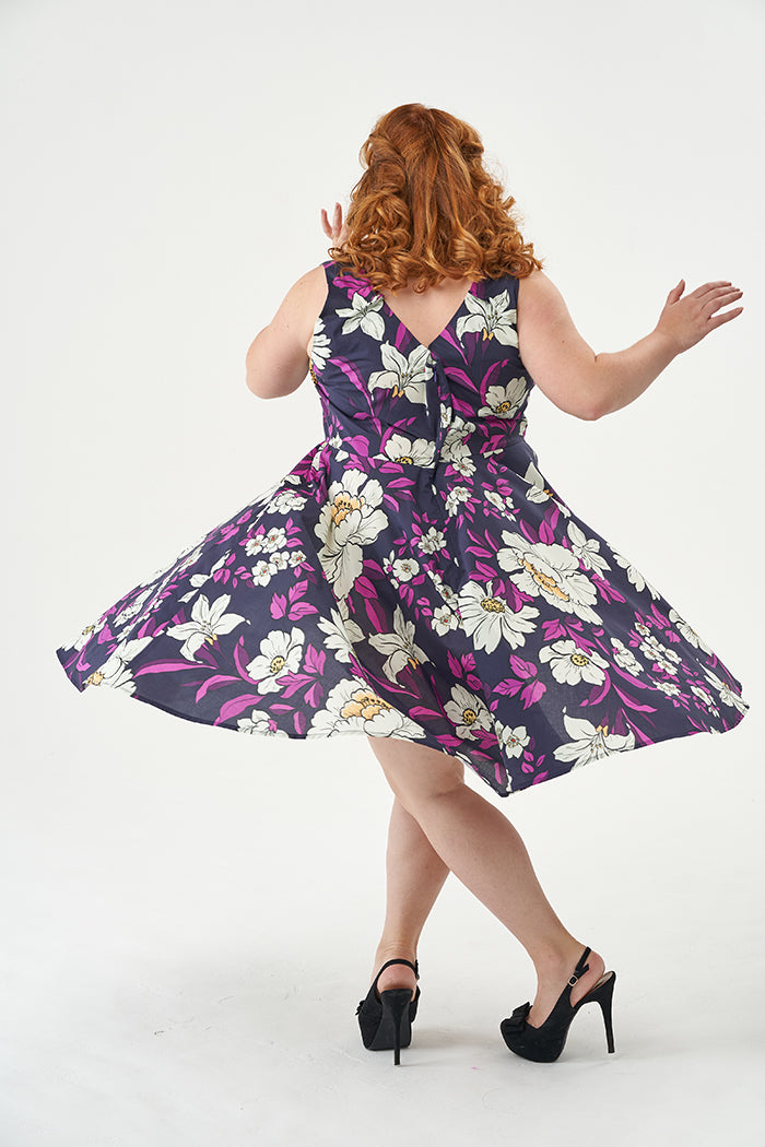 With a fitted bodice and full circle skirt, Betty is super flattering for all figures, nipping you in at the waist and flaring out to create a beautiful silhouette. The dress fastens with an invisible zip down the centre back, has facings around the neckline and armholes and a machine finished hem.