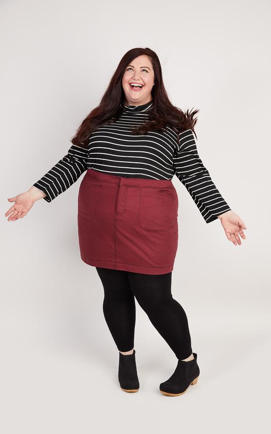 Classic denim gets an update with the Ellis Skirt! Designed for stretch wovens, this skirt pattern promises a flawless fit with two pelvis options (apple or pear), a shaped yoke, fitted waistband, and tailored back darts.