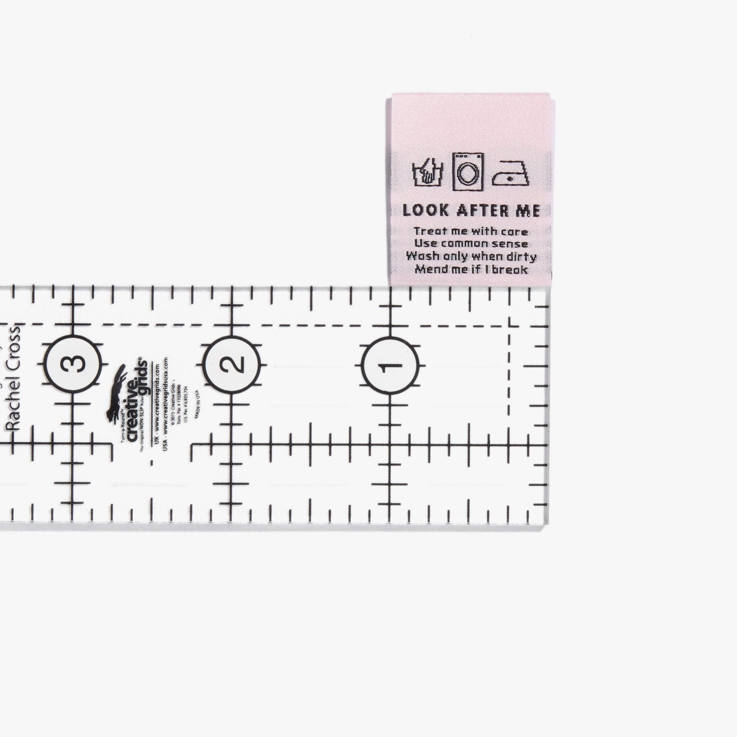 Centre folded, this label is ideally sewn onto the garment (either inside or displayed visibly) by inserting into a seam allowance or facing.
