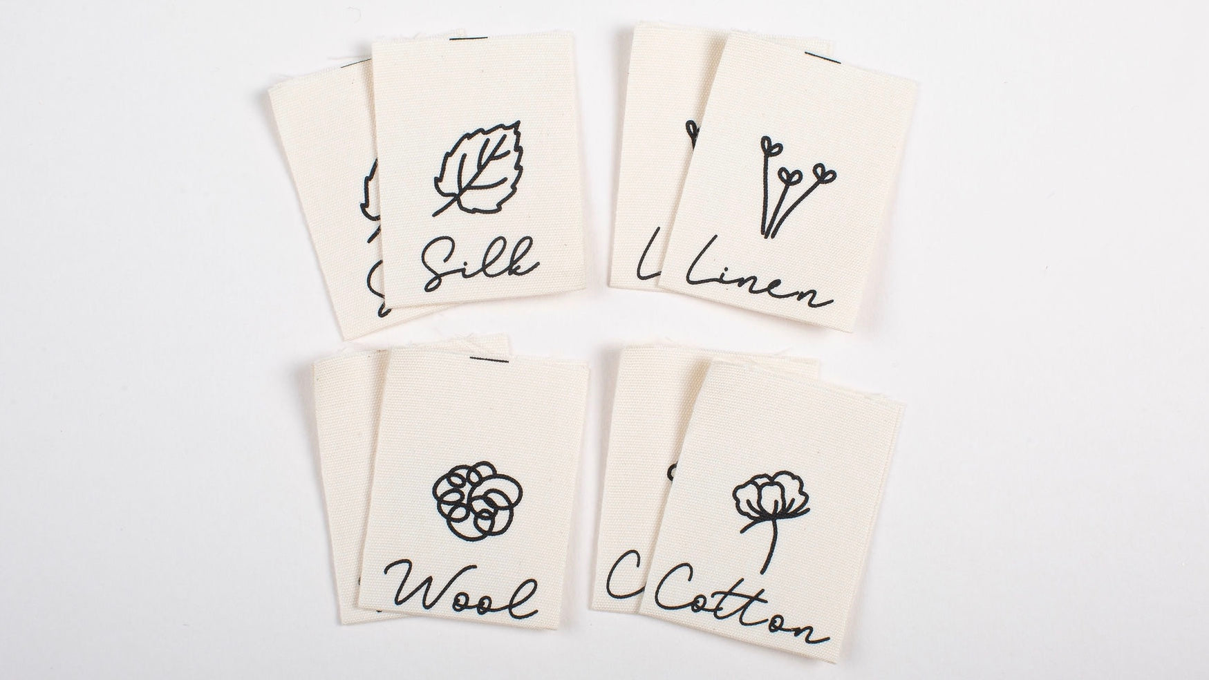 Cotton, Linen, Silk, Wool - 2 of each design per pack