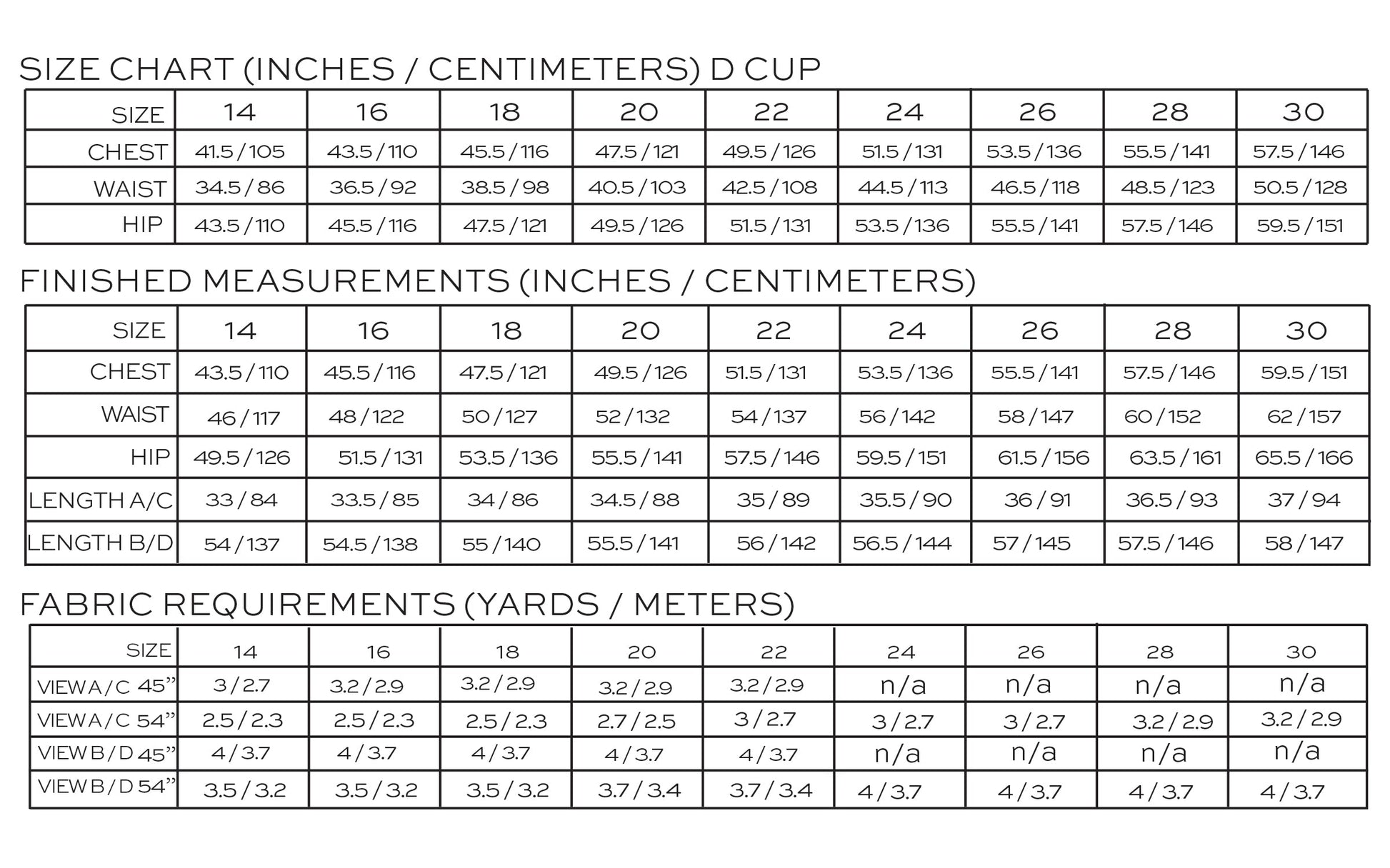 Includes sizes 14 - 30 (waist sizes 86cm - 128cm).