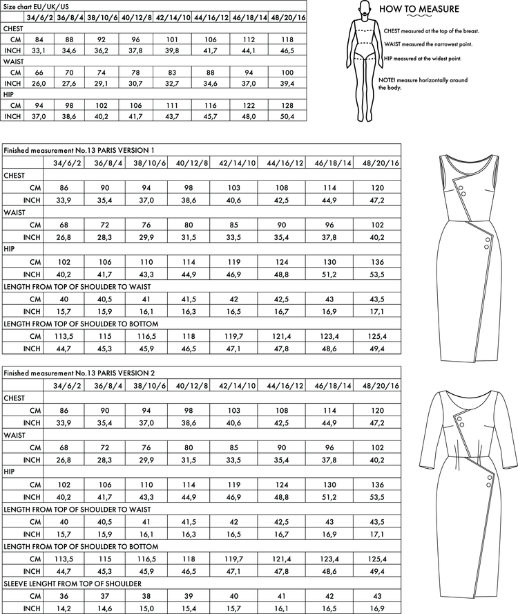 The Paris sewing pattern includes a dress in two versions - one without sleeves and one with mid-length sleeves.