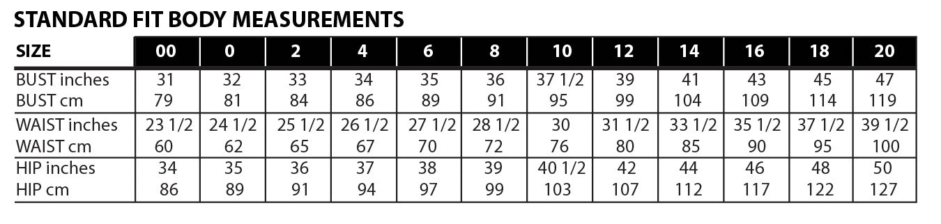 Includes sizes 00 - 20 (bust sizes 31" - 47").